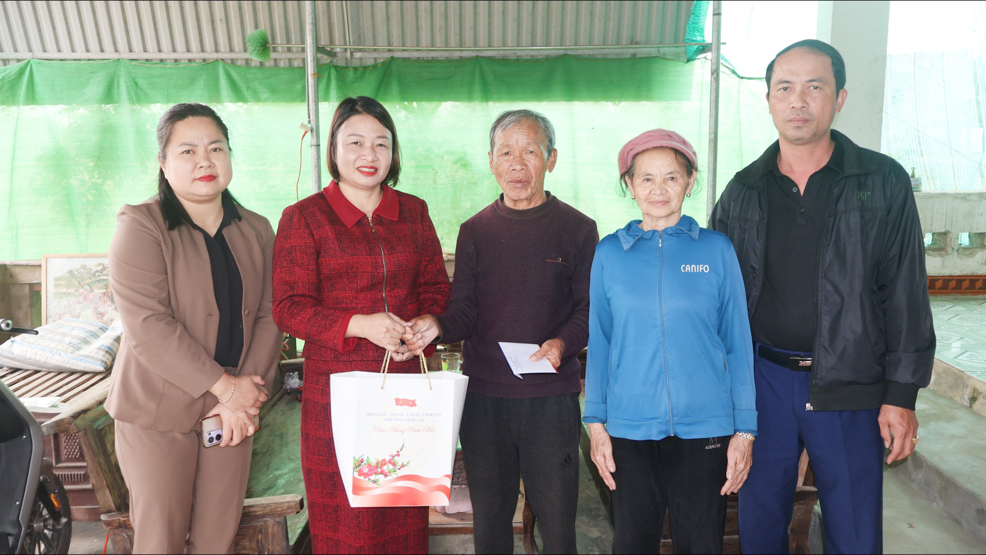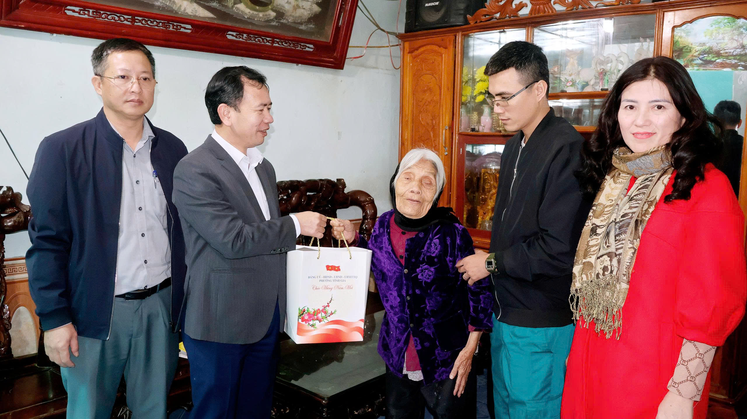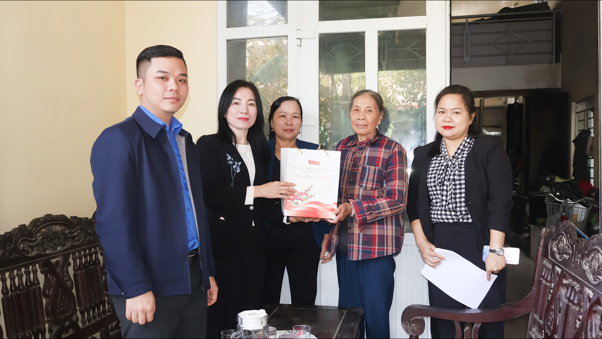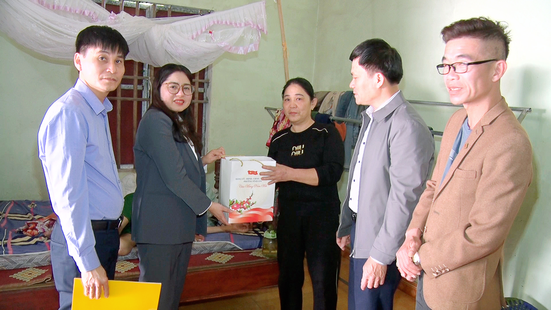 Đồng chí Phó Chủ tịch UBND phường đã đến thăm, tặng quà bà: Dương Thị Trình, thương binh 4/4; ông Lê Văn Tăng, hộ có hoàn cảnh đặc biệt khó khăn và bà Lê Thị Thoại, hộ có hoàn cảnh đặc biệt khó khăn, tổ dân phố Vinh Tiến; ông Lê Trọng Khuých, bệnh binh và hộ bà Lê Thị Lý, có hoàn cảnh đặc biệt khó khăn, tổ dân phố Tiền Phong; bà Lê Thị Soạn, hộ cận nghèo và bà Nguyễn Thị Lồng có hoàn cảnh đặc biệt khó khăn, tổ dân phố Giang Sơn.